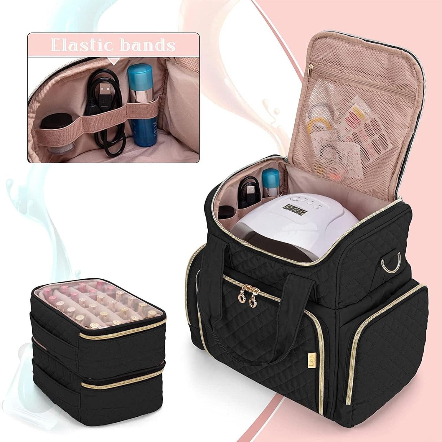 ¿Cabe una lámpara de uñas en el compartimiento superior?: Sí, el diseño está pensado para alojar una lámpara UV/LED estándar.